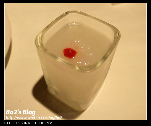 原先想點”雪沁藍橙”..但這光看名稱就知道應該是有加雪碧不偌”膠原紅香檳”這種飲料來的有吸引力..一樣有雪碧的味道..紅色的部份說真的喝不出所味的香檳味..底下有食用性的膠原蛋白…顆粒狀的口感很特別…—————–【小詠美食度量表】☆此為個人主觀看法..僅供參考☆美味度:★★★★☆