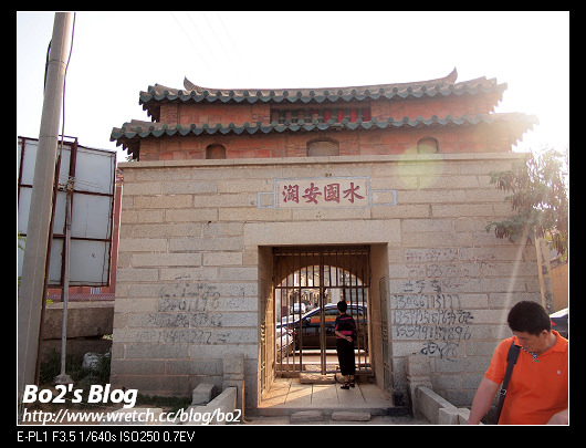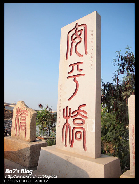 —————–地點:福建-泉州安平橋位置:福建省晉江市安海鎮和南安市水頭鎮之間的海灣上電話:0595-85609683(晉江市旅遊局) 日期:2011/7/22門票:無—————–泉州有兩大古橋,洛陽橋及安平橋,因兩者重覆性太高,所以就選看”安平橋”,包車的司機似乎是趕下班的緣故,原是打算用個泉州市城郊景點拖延時間就把我們打發掉,什麼空氣汙染嚴重,水汙染嚴重,很臭很髒那些話都出來了,囧。是我們堅持,才勉為其難帶我們過來。(雖然司機人態度不錯,但總覺得就是有種”偷工減料”的感覺)安平橋又稱五里橋,分東西兩側,”聽潮樓”這是所謂的西側,聽說走完這整座安平橋需1個多小時的腳程,走完天黑司機應該會翻臉吧,所以只好放棄。如果之後有機會再來到這邊,我一定會很認真的走完全程(握拳)。聽潮樓雖說是樓,但外觀頗像城牆,背面有「水國安瀾」。