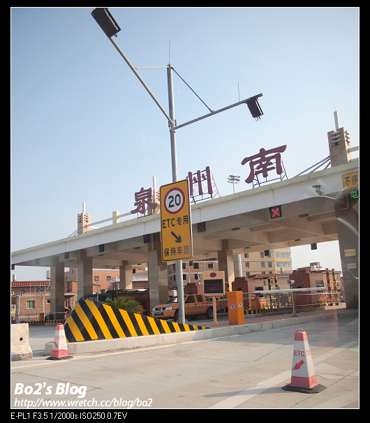 南泉州收費站,過路費或許是人民幣10元,通常是設在高速公路出入口,有趣的是,也有ETC專用道耶,只是限速20會不會強人所難啊?