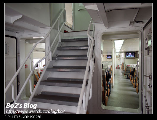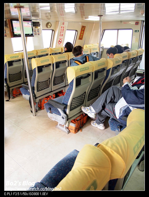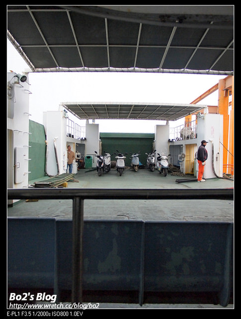 將機車停放完畢後,因為外頭風大,我們就躲到裡頭的船艙去休息囉。