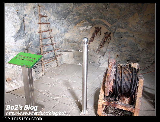 坑道裡頭還擺了開鑿時使用的機具跟器具,不過海水腐蝕的關係,繡斑累累。