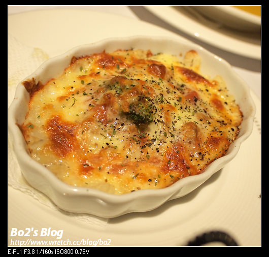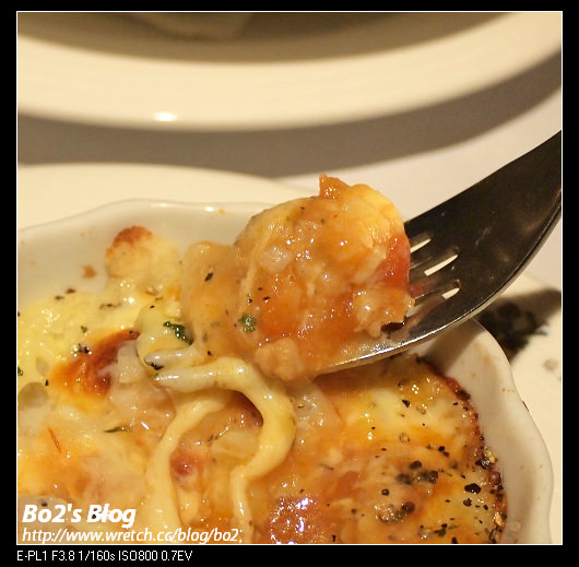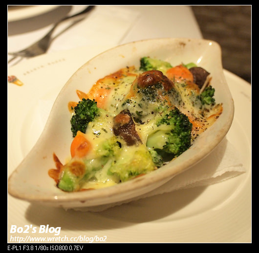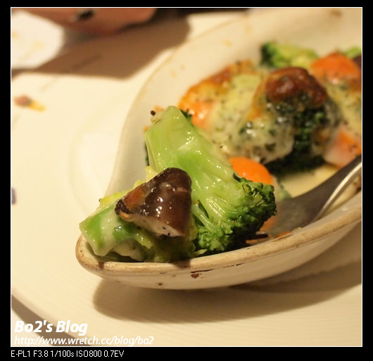 基於養生觀念,所以我點了焗烤鮮蔬(加了焗烤好像不會比較養生吼)裡頭有香菇/花椰菜等等的蔬菜,川燙過加焗烤,簡單卻又不失美味。