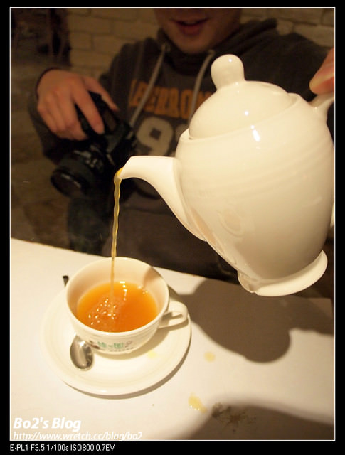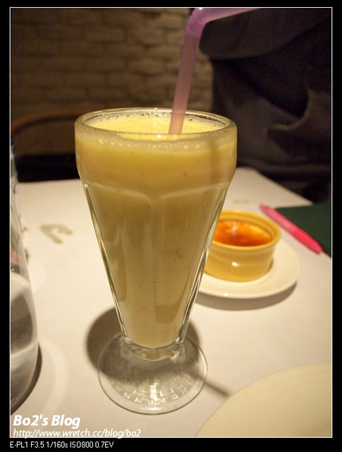 口感細緻的布蕾有著濃濃的蛋味,我們倆都覺得比千層派來的好吃多了。—————–【新鮮水果茶】加價套餐飲料
