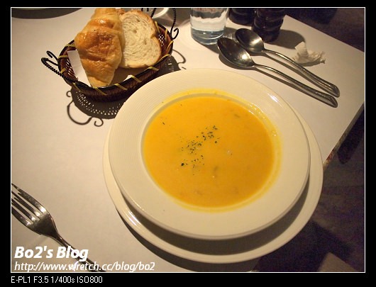 雖然很燙口,不過我還是很快的就把它給喝光光。—————–【法式南瓜湯+牛奶香小羅宋+香酥可頌】加價套餐湯品