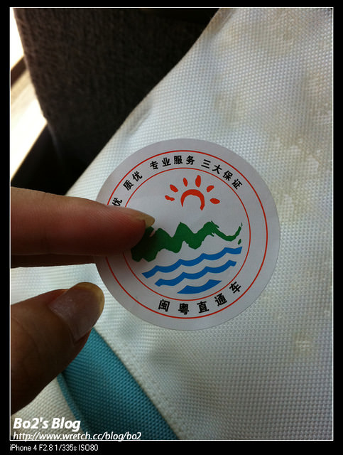 —————–上車後,每人身上都會貼個識別貼紙,連答這車都是個新鮮體驗,車上龍蛇雜處,各省份都有,光聽那四川口音的大陸仔講了自以為好笑的腸子打結還真倒胃,