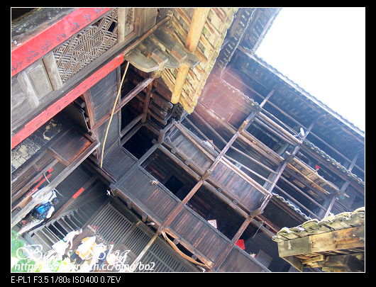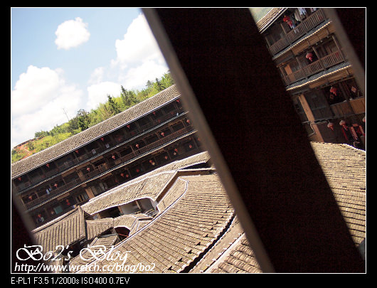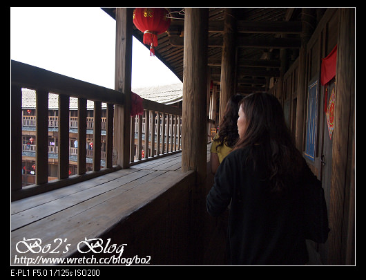 進到承啟樓,看著那木製屋簷跟斑駁磚瓦,還是有種不真實感,現在科技之進步,讓我可以這麼輕易的看到/觸摸到圖片上的東西。雖然開放觀光,但原先住戶還是繼續住在這,所以只開放四樓參觀,而且人多,還有人數限制,所以一堆人擠在下面,
