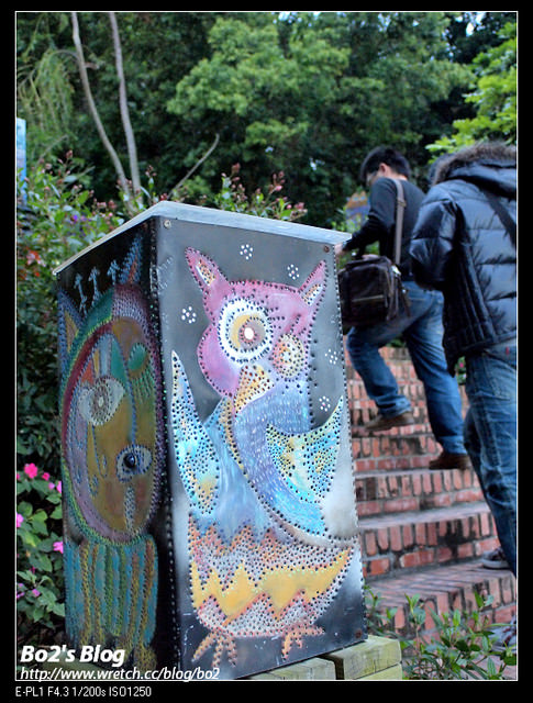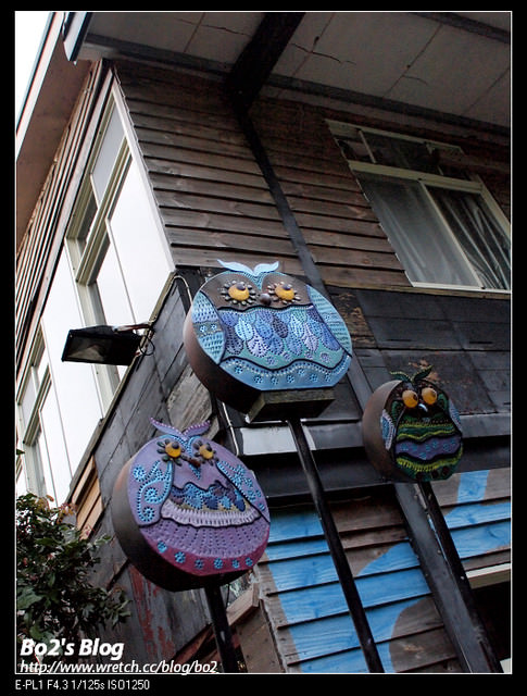 路口處為”大鋤花間招牌”,旁邊豎立的三隻貓頭鷹及咖啡杯都很有特色哩。
