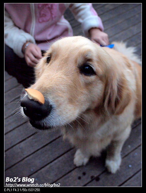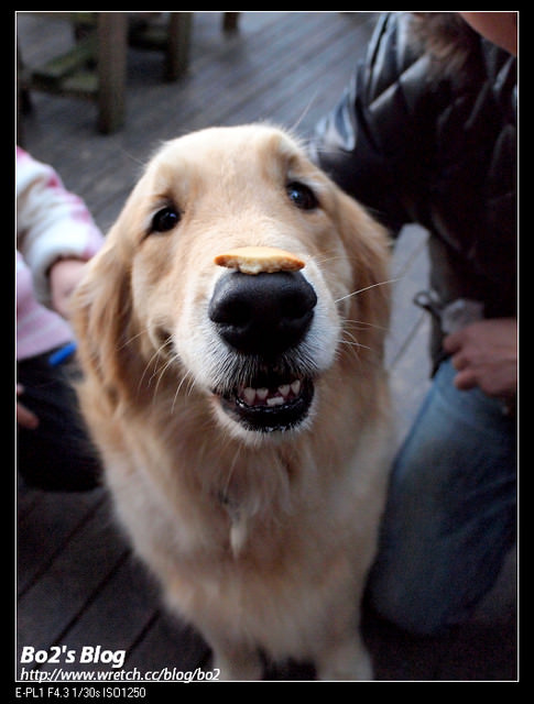 除此之外,還有隻可愛的黃金獵犬”Ella”,專長是把餅乾放鼻子上,就算口水流滿地,還是聽到指令才會把餅乾吃掉,