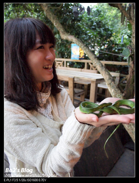 沒想到老闆還有另外一種寵物,竟然是青蛇,雖然老闆一直強調這蛇是沒有毒性的,但還是要有一定勇氣才敢把玩。
