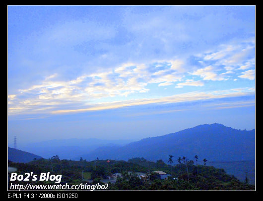到達大鋤花間正值黃昏時刻,遠眺夕陽的彩霞還蠻漂亮。由停車場到餐廳之前,有段小小的爬坡,