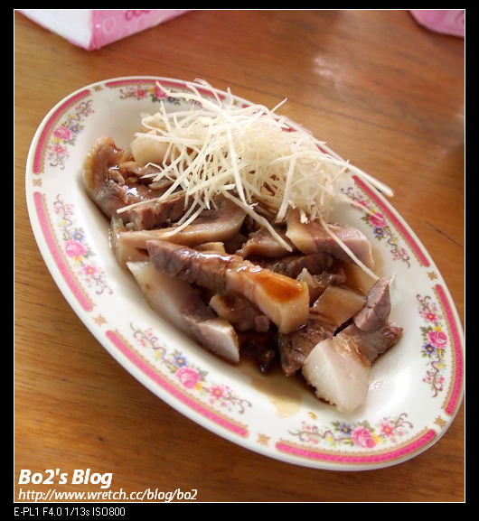 想像中的豬頭飯,應該就是肉燥飯上頭舖了層豬頭皮。看到這碗”白帥帥”,毫無裝飾的白米飯端上來,當下還真有點傻眼哩。原來所謂的豬頭飯,其實就是用煮豬頭皮的高湯來煮成的飯,看起來粒粒分明,吃起來比白飯多了些許的高湯味,不過還是要另外配菜。不然單獨這樣吃,說真的還是太稀微了些。—————–【豬頭肉】NT.20