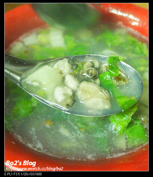 在金門,不管是蚵仔麵線/蚵仔米粉湯,以之於這蚵仔湯,只能說,這裡的店家,蚵仔都給的毫不吝嗇,真的讓我吃的好開心。吉祥餐飲的蚵仔湯,裡頭還加了小白菜,蚵仔還帶有點淺淺的勾芡,跟台灣吃到的口味有點不大一樣,雖然鮮度十足,不過調味稍淡了些,有點美中不足。
