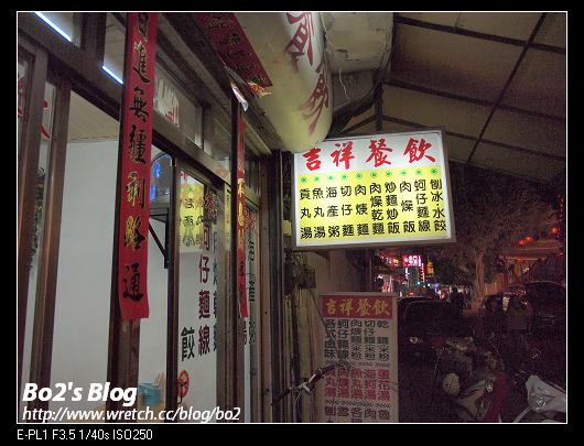 飯/麵/湯類 NT.20-NT.70不等—————–金門著名小吃,除了大家熟知的廣東粥/蚵仔煎外,炒泡麵也是一絕。跟黃厝的”芋戀肉”一樣,都是戰時為了因應交通不便民生物資比較缺乏,而衍生出來的菜色。金門炒泡麵可不少家,網路上不少人比較推太湖榕園附近的安民炒泡麵(鴻美餐飲),可惜當天經過附近時非用餐時間,胃裡還塞了未消化完畢的芋頭水餃,就這麼擦肩而過。貞節牌坊附近為小吃群聚區,雖沒吃過安民炒泡麵,不過也是料多味美又實在,頗值得推薦,就蜜蜂兄所述,這兒的炒泡麵,可是比台南孔廟附近的”保哥黑輪炒泡麵”來的更好吃,更大碗哩。—————–吉祥餐飲位於金門中興路上,