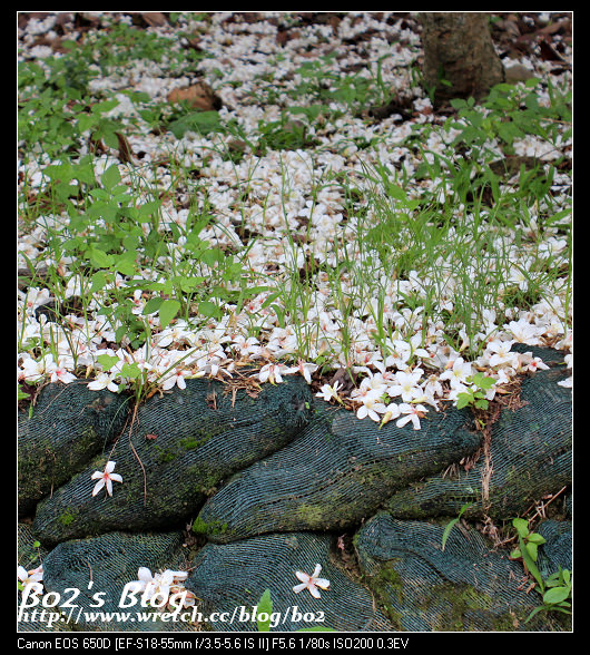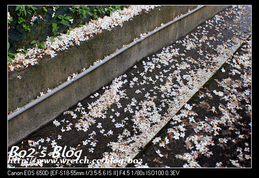 這次大多是被雨水打落,雖然地上依然雪白一遍,但那意境就差很多了。