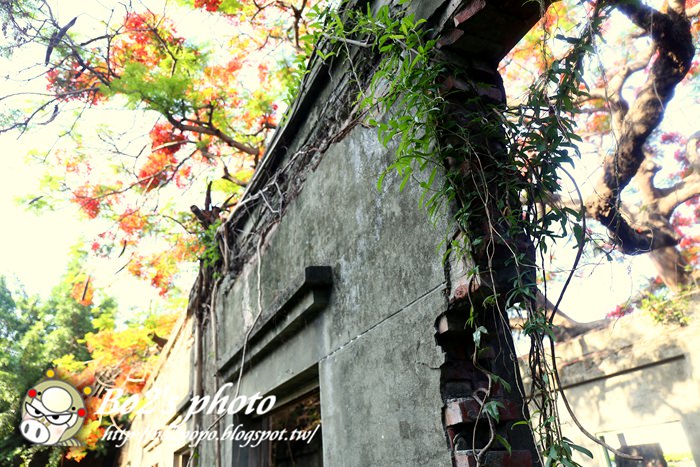 鮮豔的花朵配上頹圮的建築,同個空間殘留兩個不同時空的物體,那感覺很妙哩。