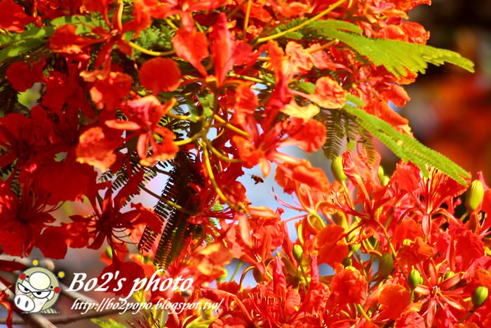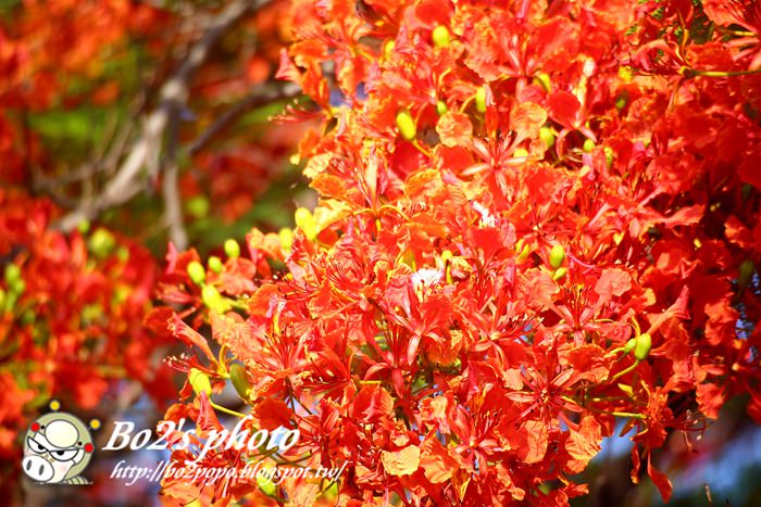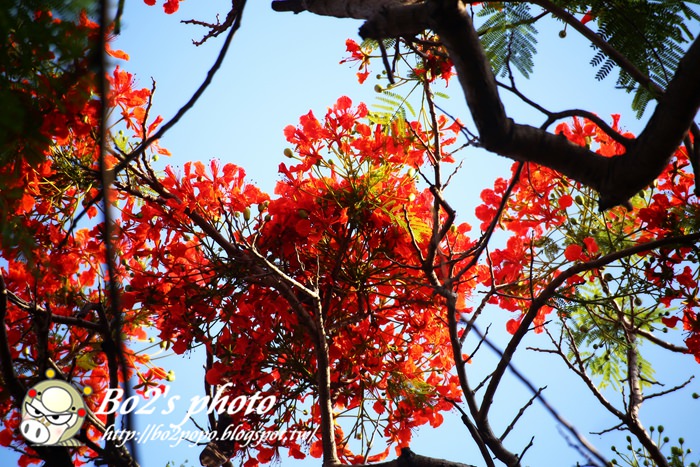 目前正是鳳凰花開正旺之際,花開燦爛彷彿就是要迎接人群的到來。