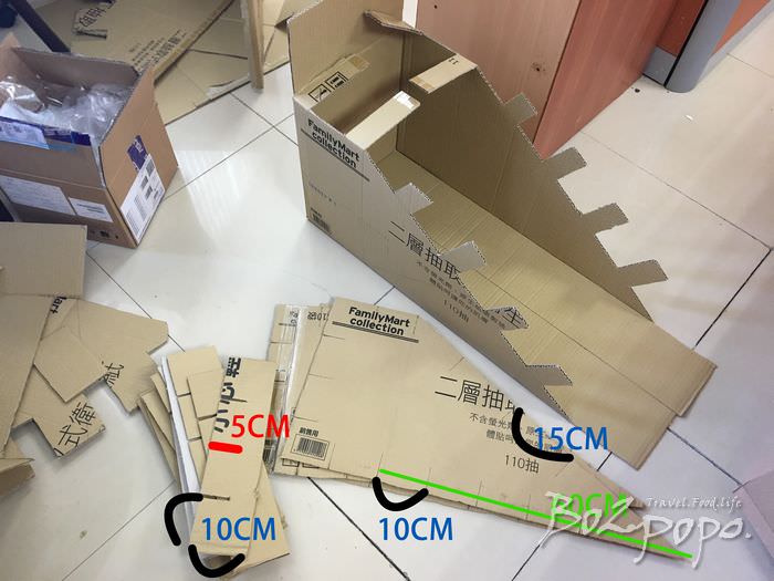 我後面有額外用紙箱當階梯,用魔鬼氈黏合。