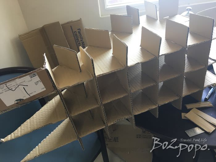 網路上有用紙箱堆疊的,也有一片一片拼出來的,