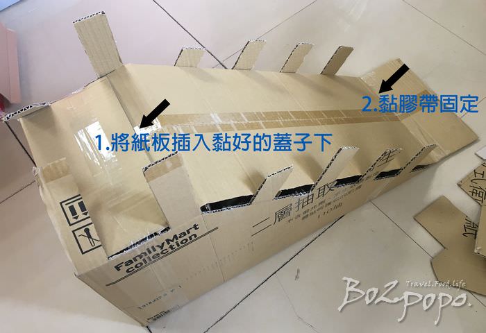 如果想要更穩些,其實可以找寬度更寬的紙箱,這樣會更牢固。