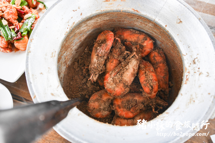 裹著滿滿的胡椒粉的蝦原本是躺在鍋內,