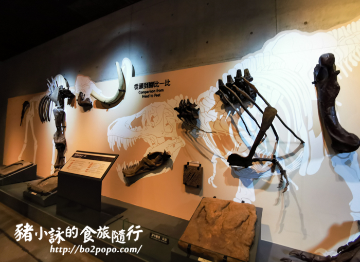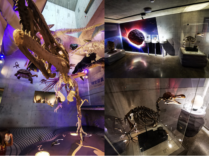 藉由爬行類及哺乳類動物的骨骼及兩生代間的時空背景、植物做相關對比介紹。
