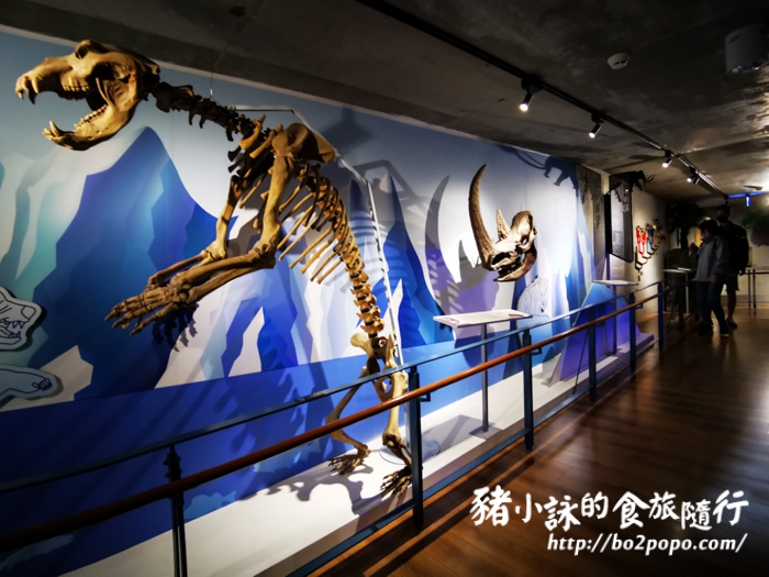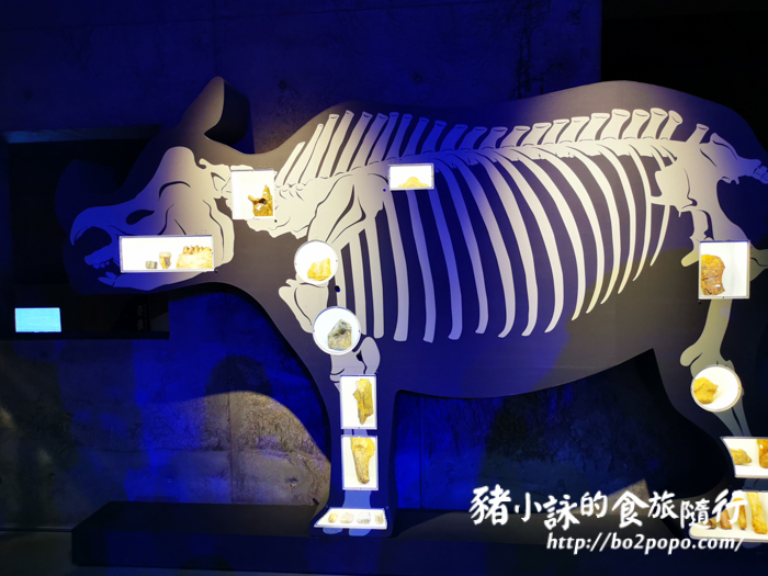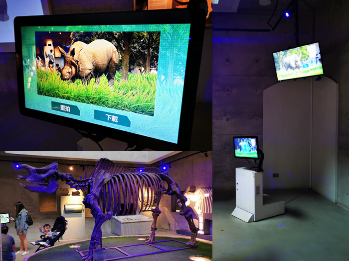 早坂犀牛全身骨架化石互動實境也很有趣,站上去可以有跟虛擬犀牛合照。