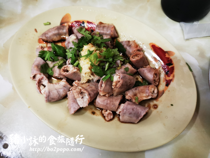 但腸子我是蠻愛吃的,川燙過加上簡單的蒜頭跟醬油,清脆爽口十分好吃。