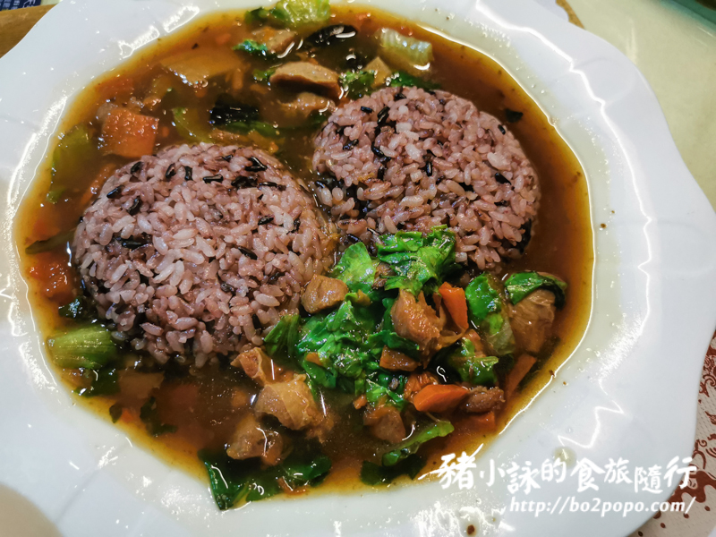 湯頭有微微的香料氣息,裡頭放了醃過的山豬肉片,氣味獨特,但整體嚐起來味屬清淡。