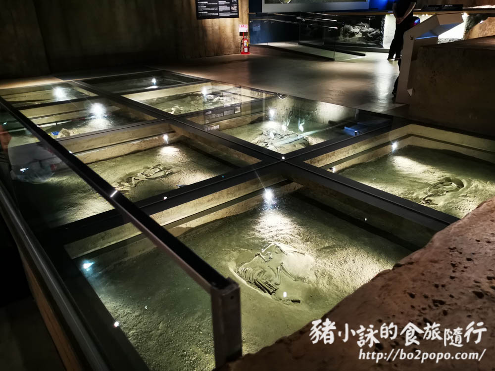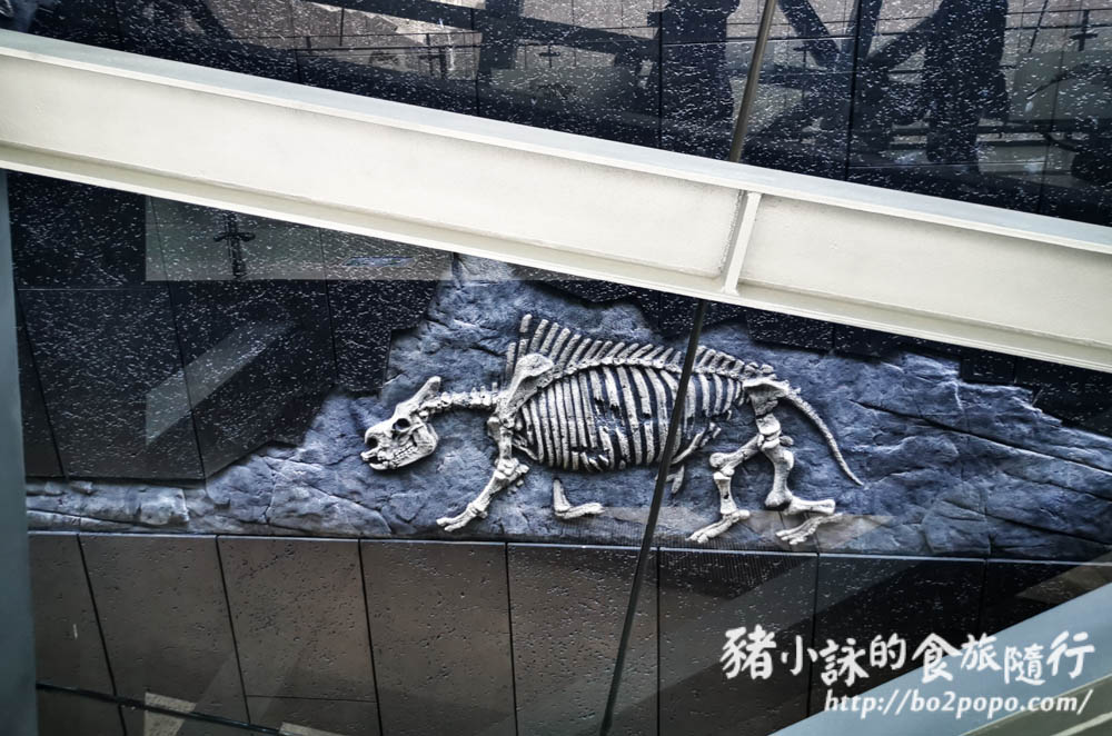 ▼搭手扶梯的時候,也可以看到位於考古館外的遠古生物骨頭圖樣。