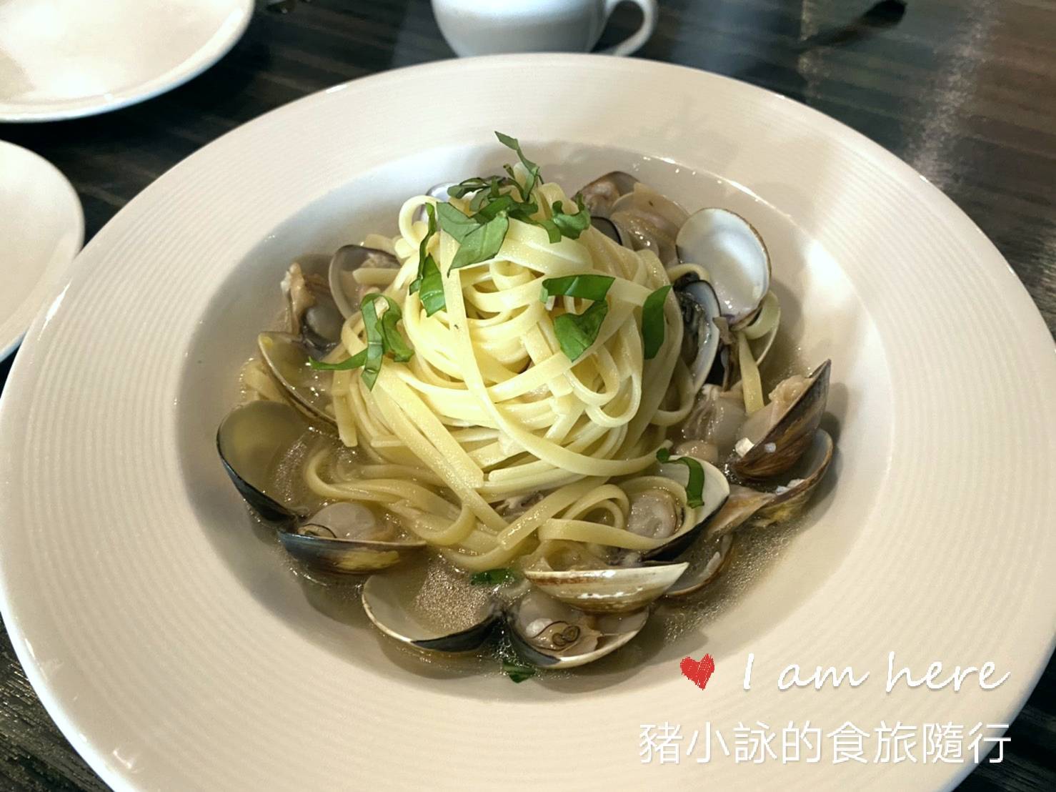 白酒蛤蠣義大利麵帶有淡淡的酒香跟蒜頭香氣,