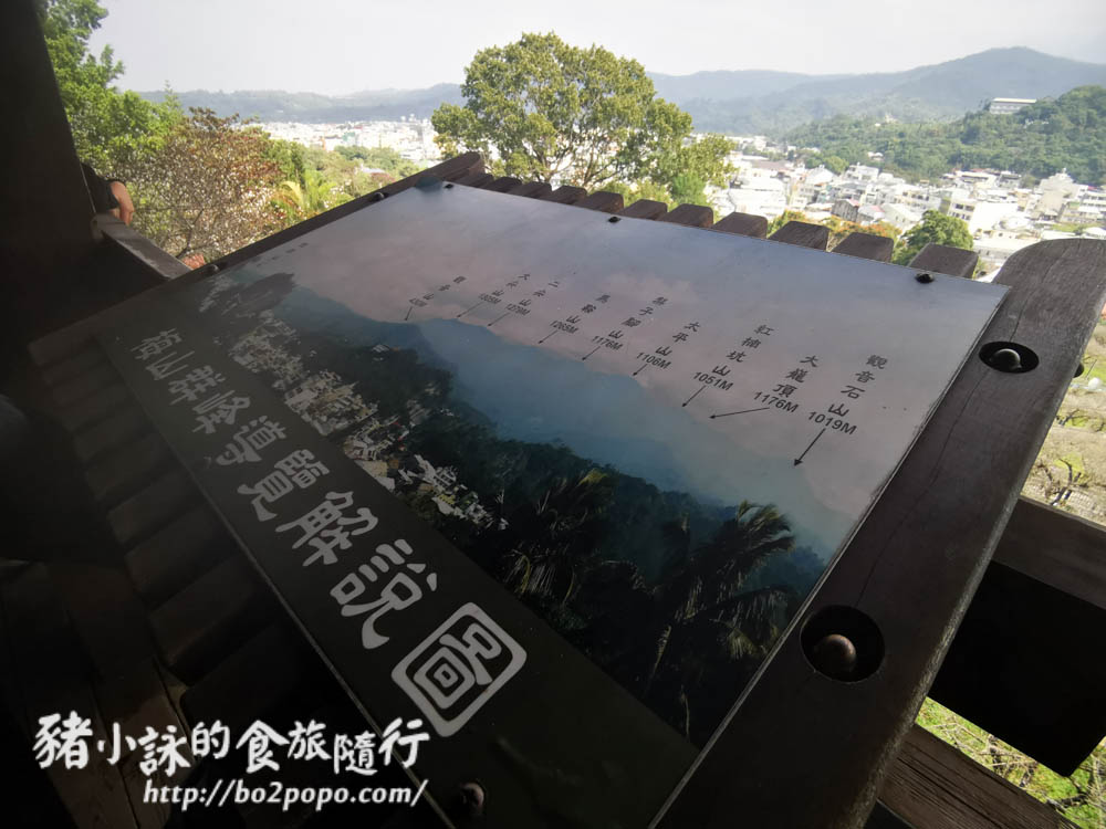 ▼按圖索驥,遠方山頭則是梅山群峰。