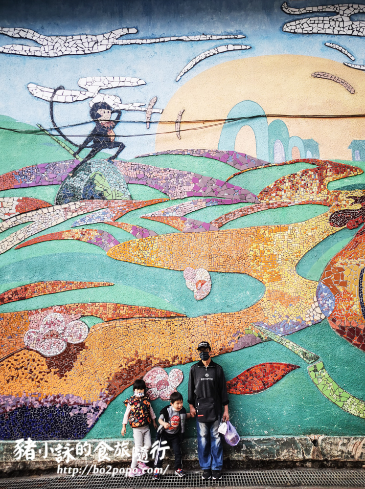 馬賽克拼貼的壁畫,色彩鮮豔。