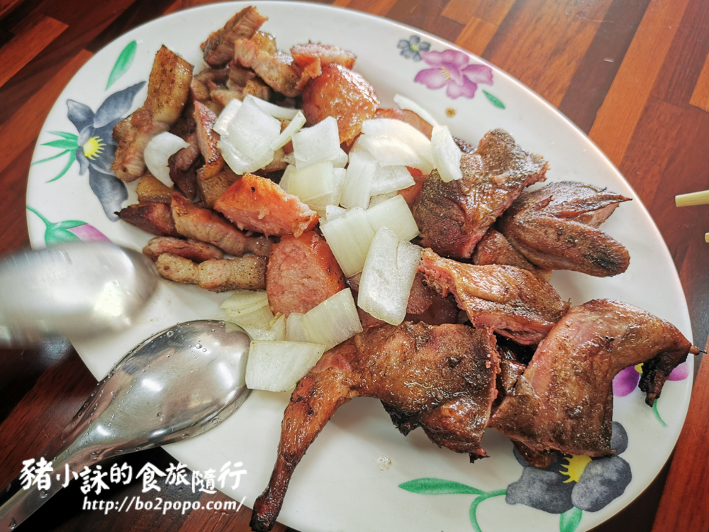 不管是山豬肉、香腸、烤小鳥都很鹹香夠味,十分下飯,可惜白飯賣完了QQ。