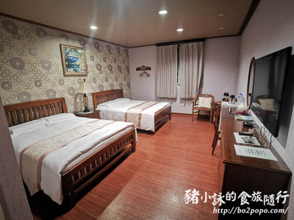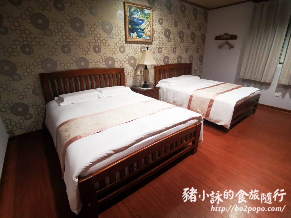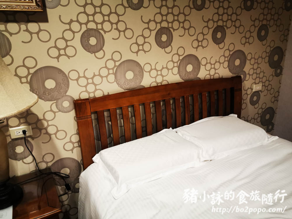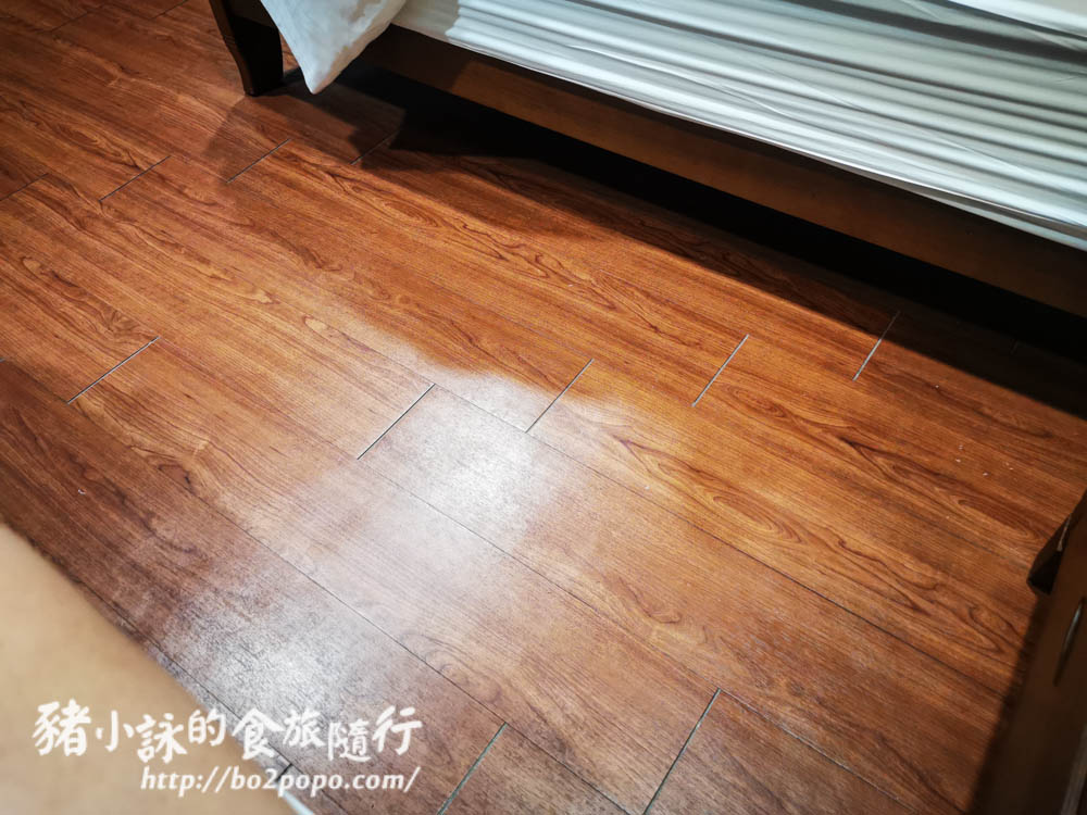 ▼床架是實木的。床還算軟硬適中,基本上還算能一夜好眠(不過我的打呼聲讓某人睡不著)。