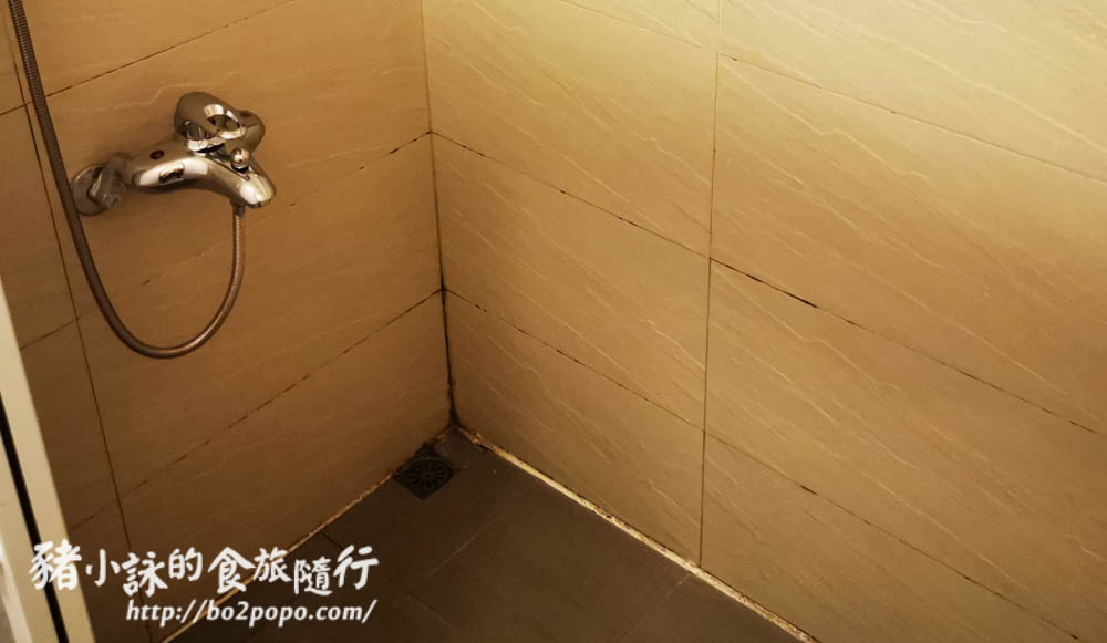 沖澡處牆縫有些許黴斑,可能通風不夠、環境潮濕又沒很認真刷洗就會這樣,