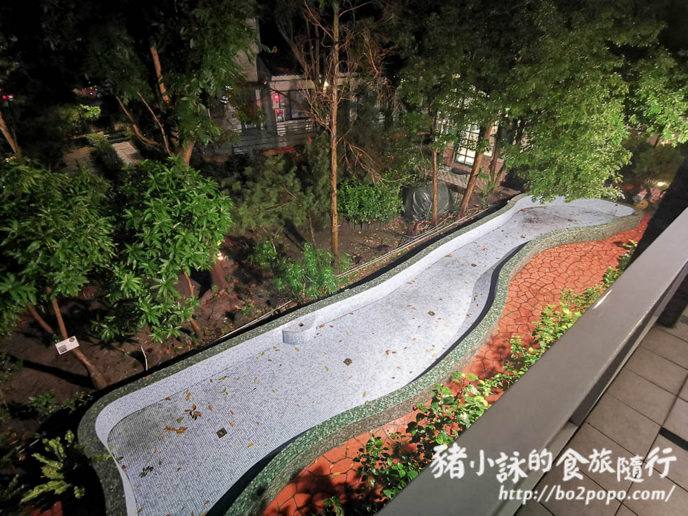 池子原本應該是泳池?目前是無水狀態,不知道夏天會不會開放?