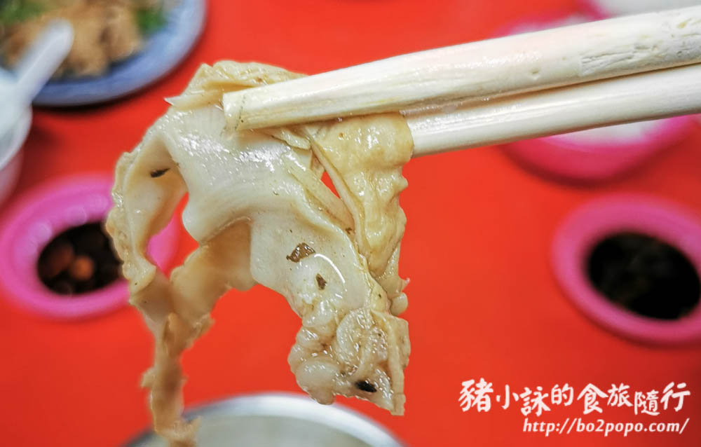 切成片狀的大腸會洗得很乾淨,帶點微酸又不會太酸的滋味超級下飯。