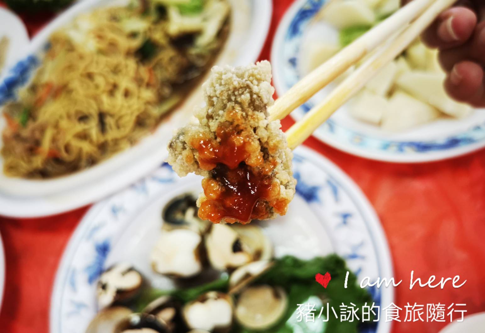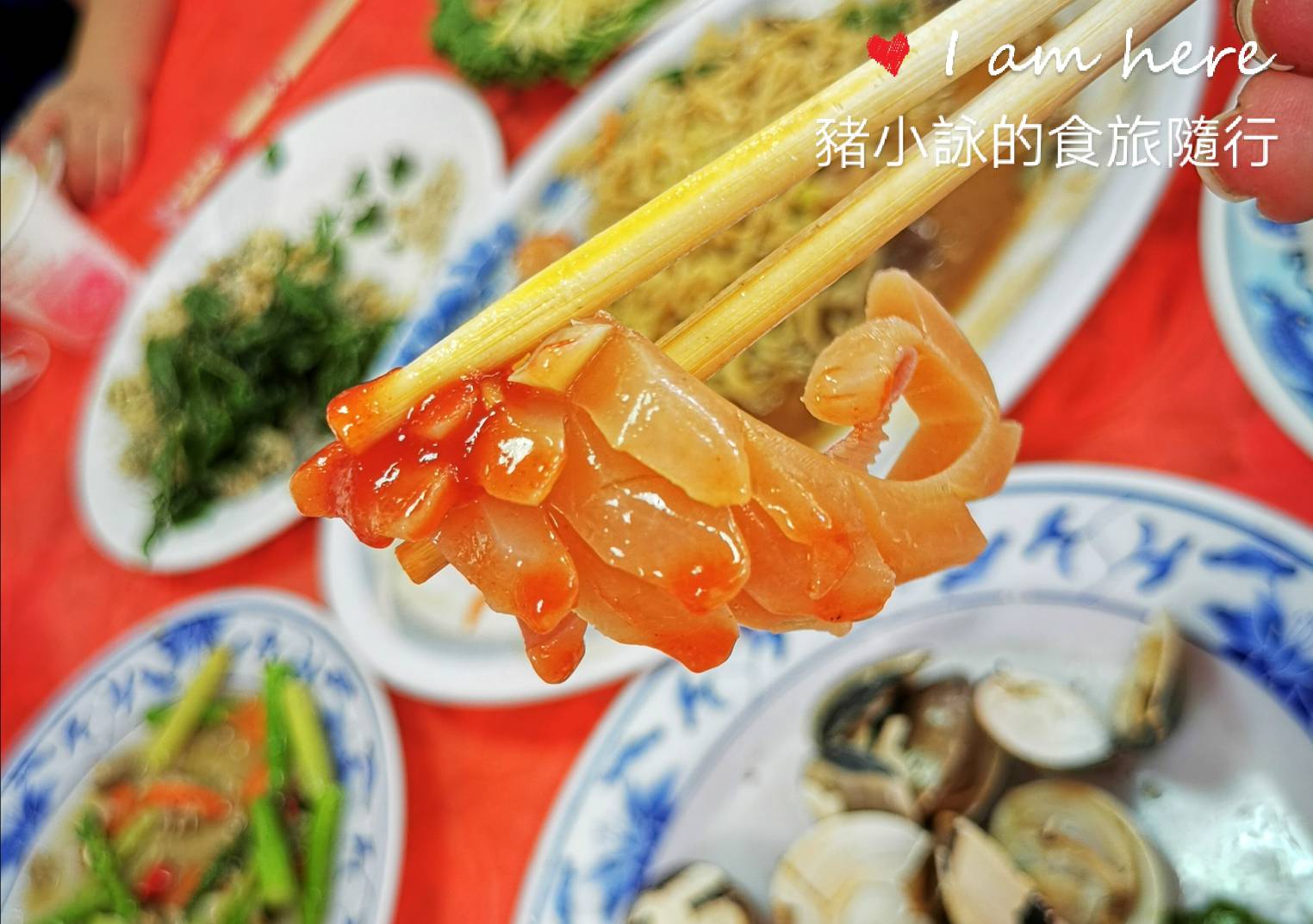 應該是為了收拾方便,餐上有鋪粉紅塑膠布,有種辦桌的感覺。