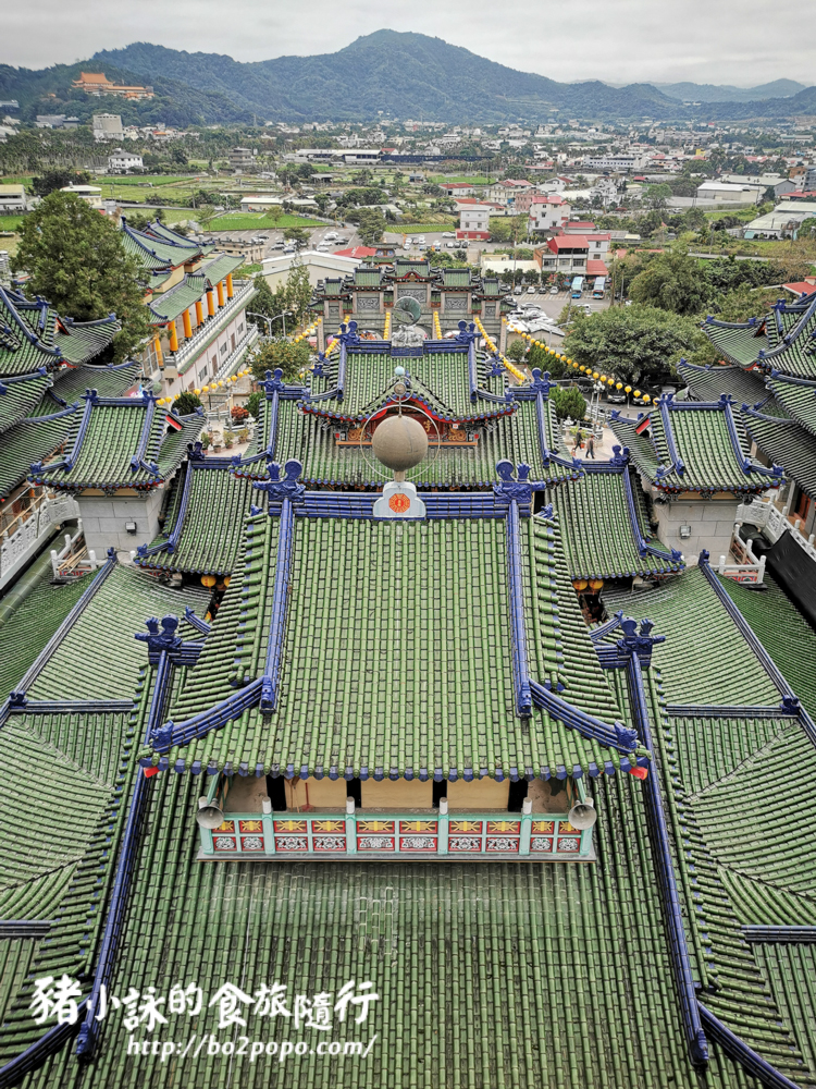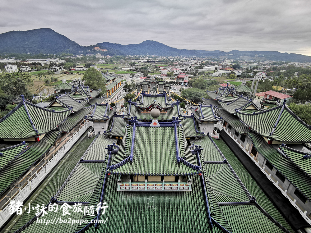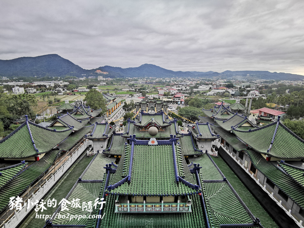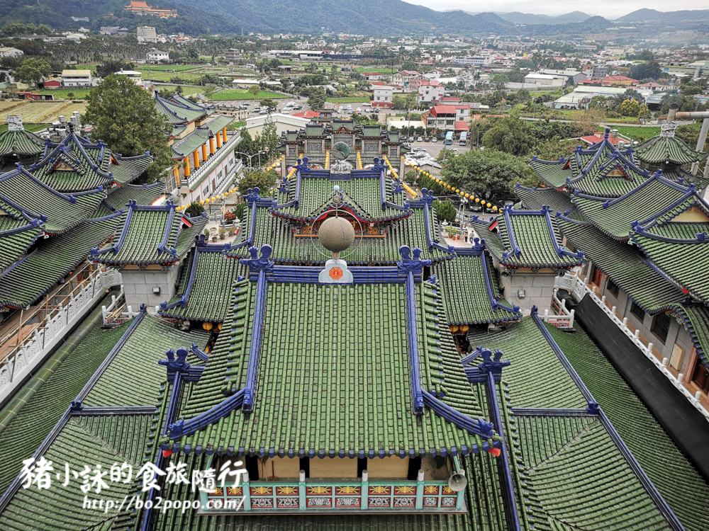 綠色屋瓦加上藍色屋脊層層疊疊,形成壯觀的廟宇園區。