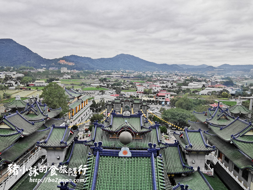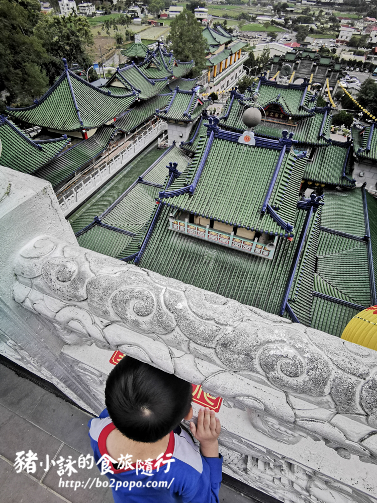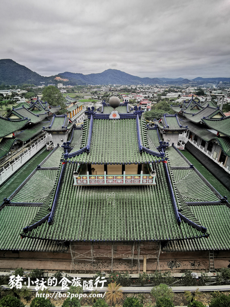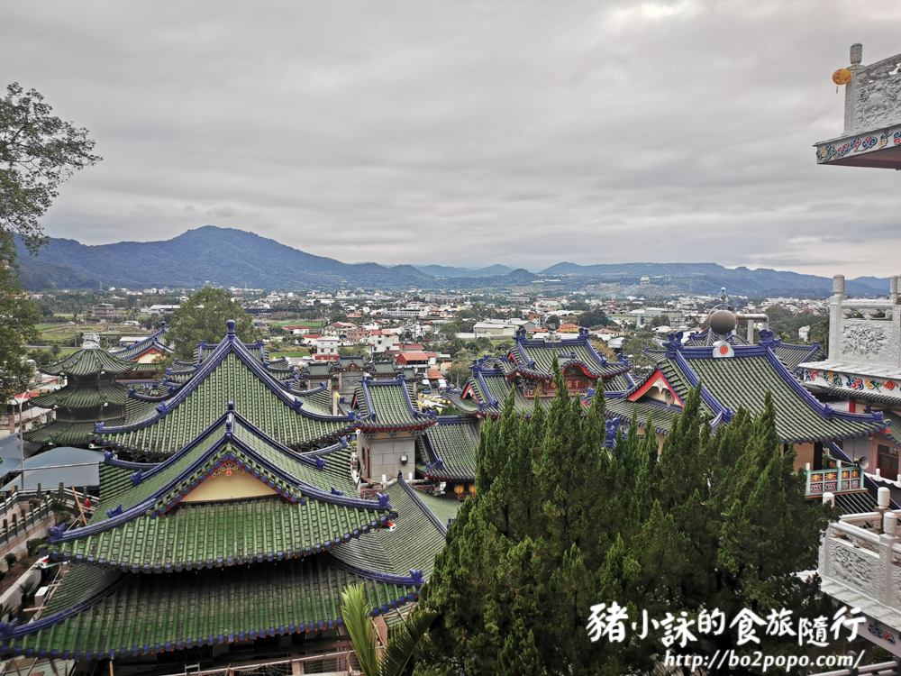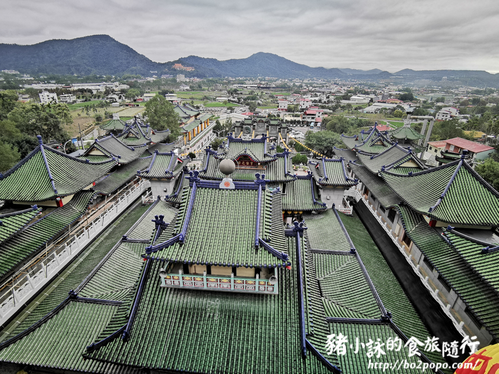 綠色屋瓦加上藍色屋脊層層疊疊,形成壯觀的廟宇園區。