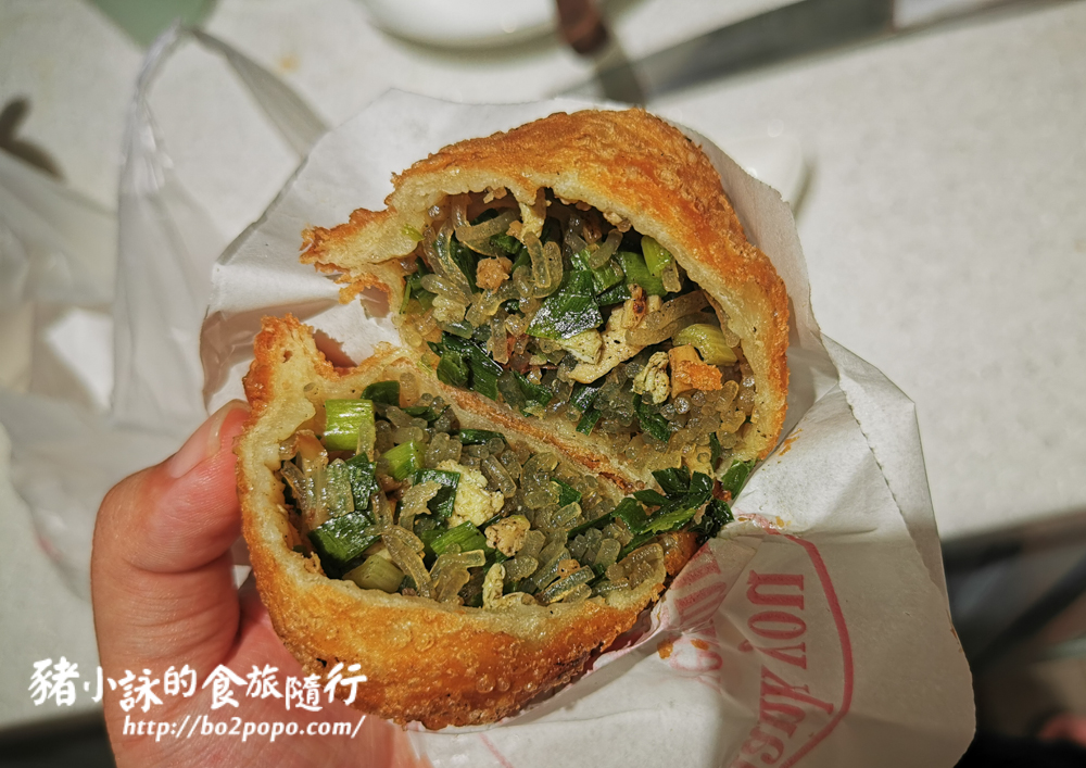 經過油炸後的餡餅皮是有厚度的,咬起來脆卻又Q。