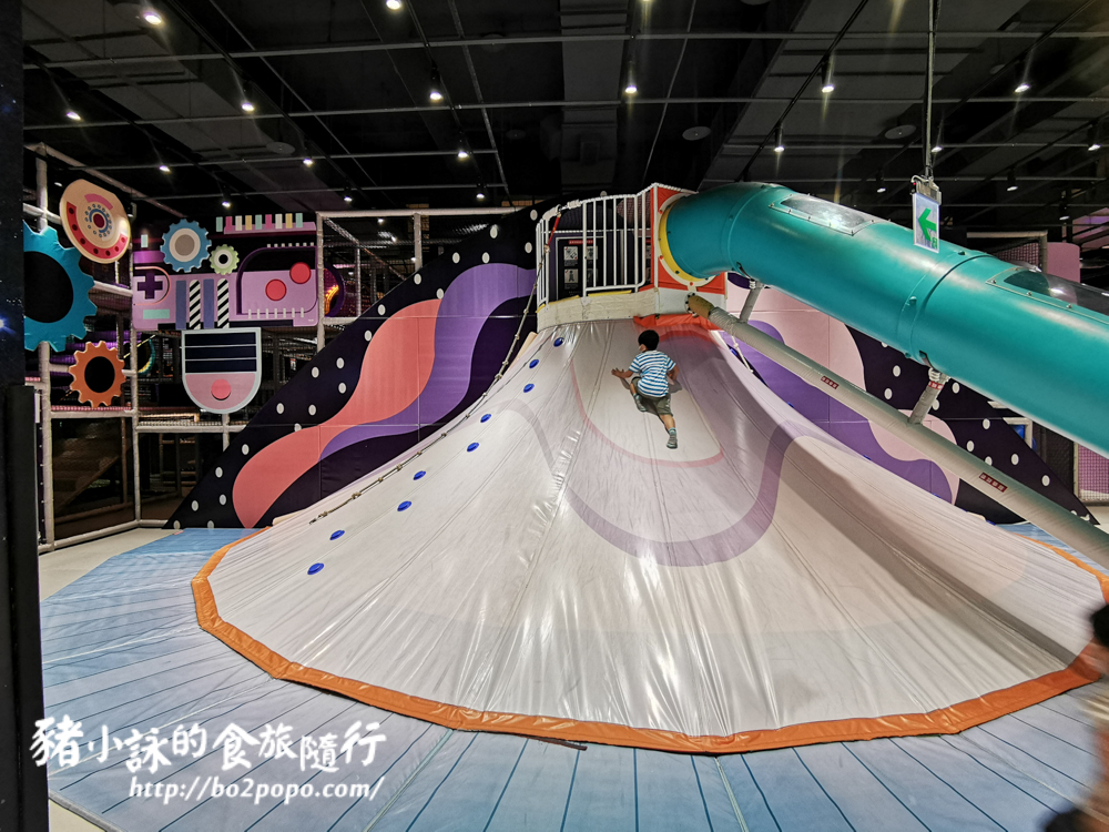 裏頭有小溜滑梯、小障礙物設置,很適合小孩奔跑。