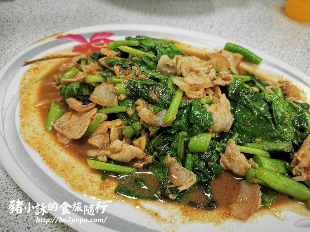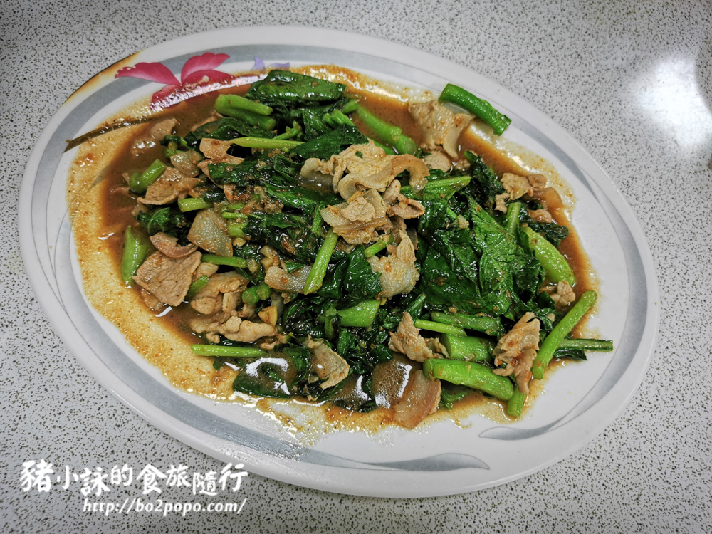 芥藍菜炒山豬肉,山豬肉彈脆有咬勁,沙茶基底也很下飯。