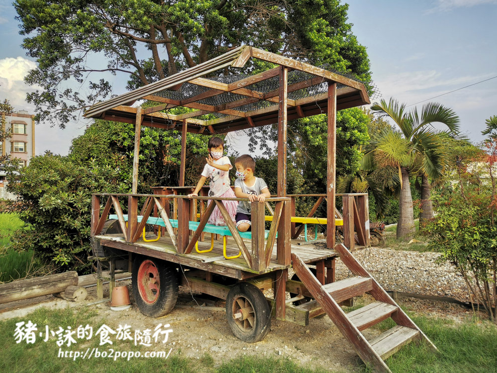 古早牛車,加上像穀倉的涼亭,讓公園充滿農村懷舊特色。