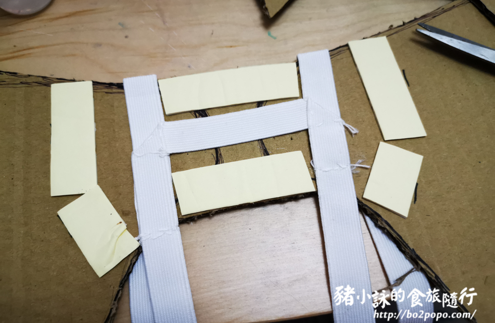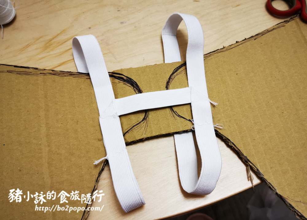 ▼背帶黏上後,加上背板,背板部份是靠背。