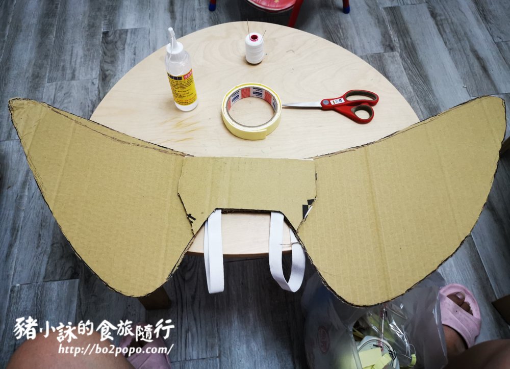 骨架的部份就是用不要的紙箱來做,依據小孩身高下去劃出輪廓再加裁切。
