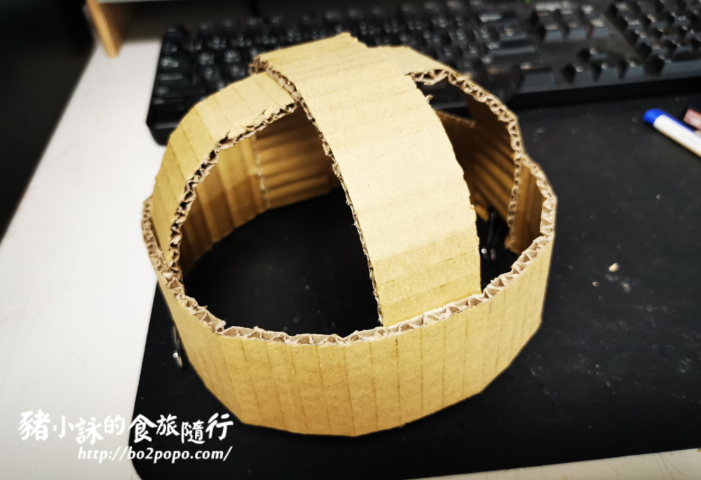 ▼將瓦楞紙剪成條狀,帽緣抓5公分寬,帽頂抓4公分左右。