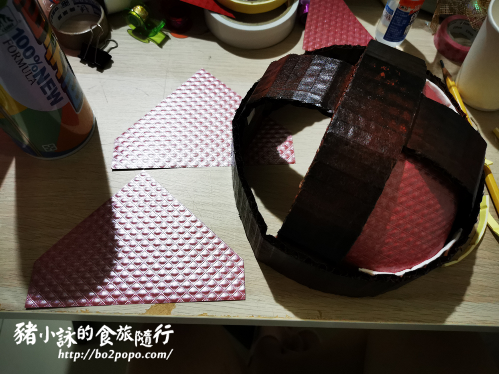 材料:紙箱/咖色噴漆/黑色噴漆/銀色噴漆/10元商品店買的水鑽/文具店買的紙