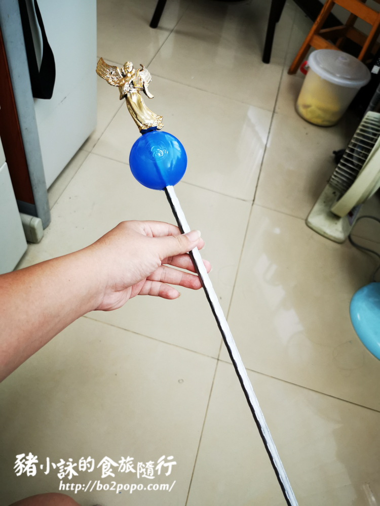 ▼把插花桿子穿過塑膠球(小時候他們倆球池剩下的),