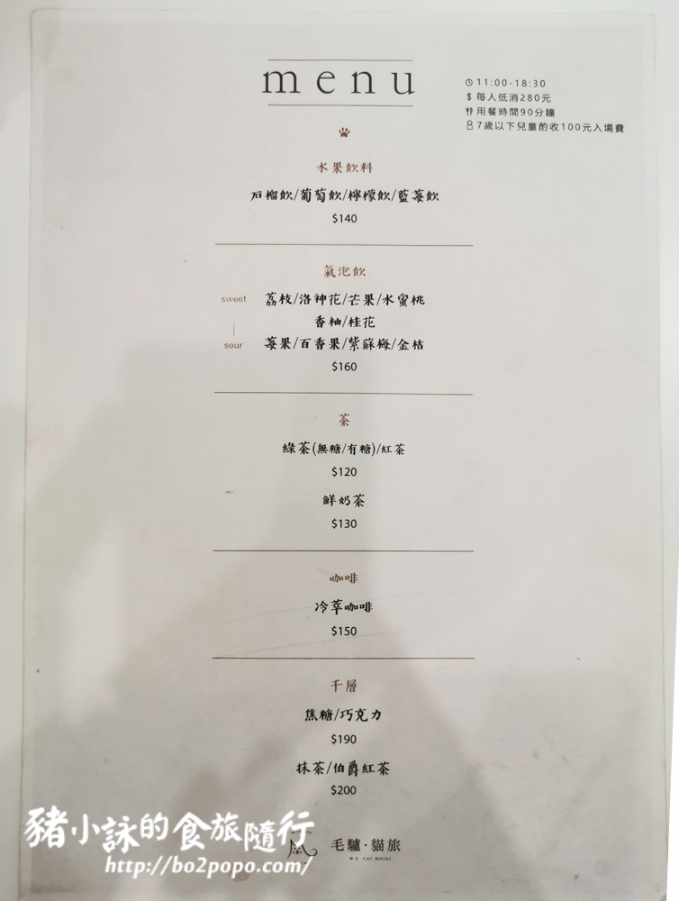 每人低消 280元,7歲以下兒童酌收100元入場費(當天毛毛因為有超過低消,所以這部分折抵)